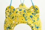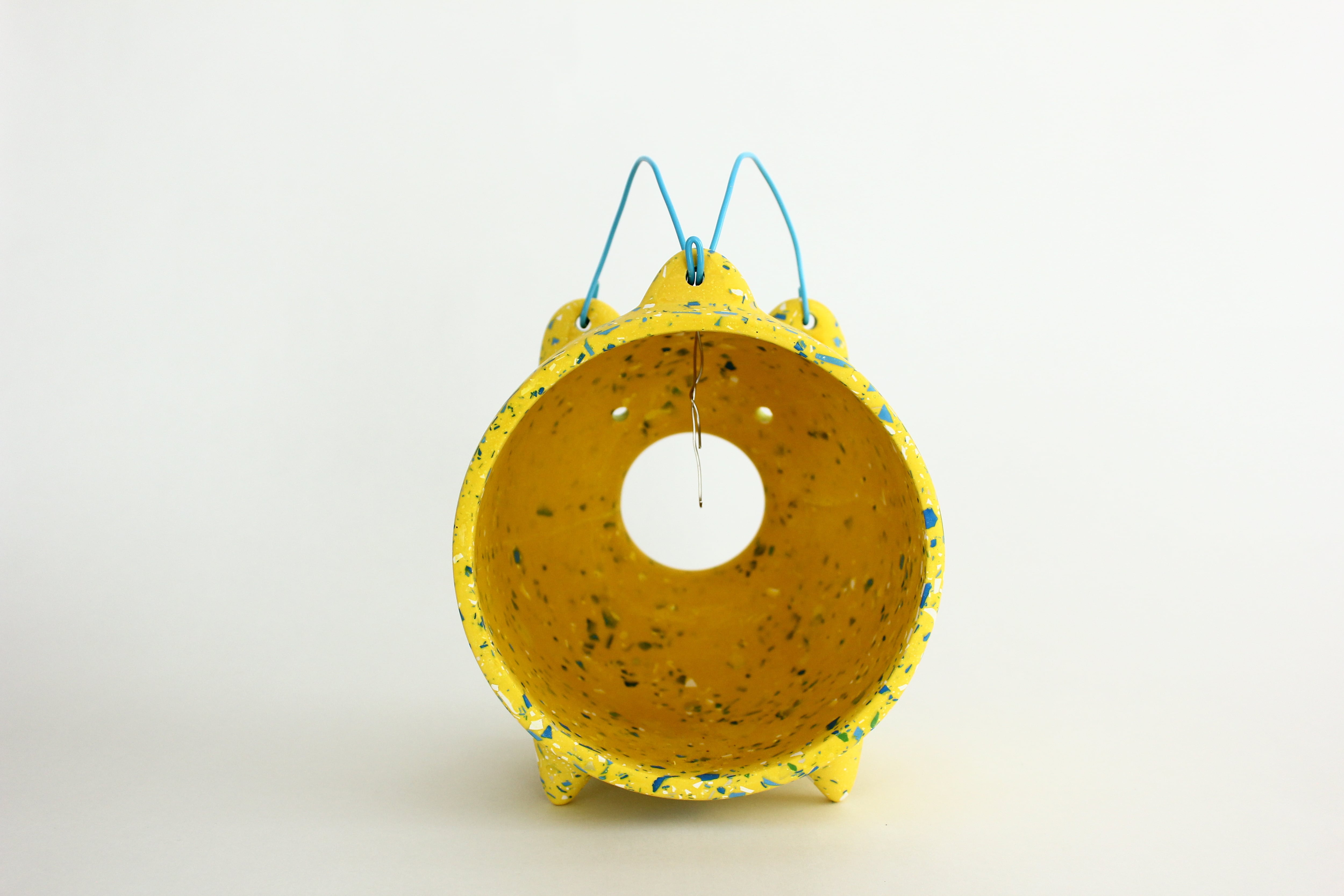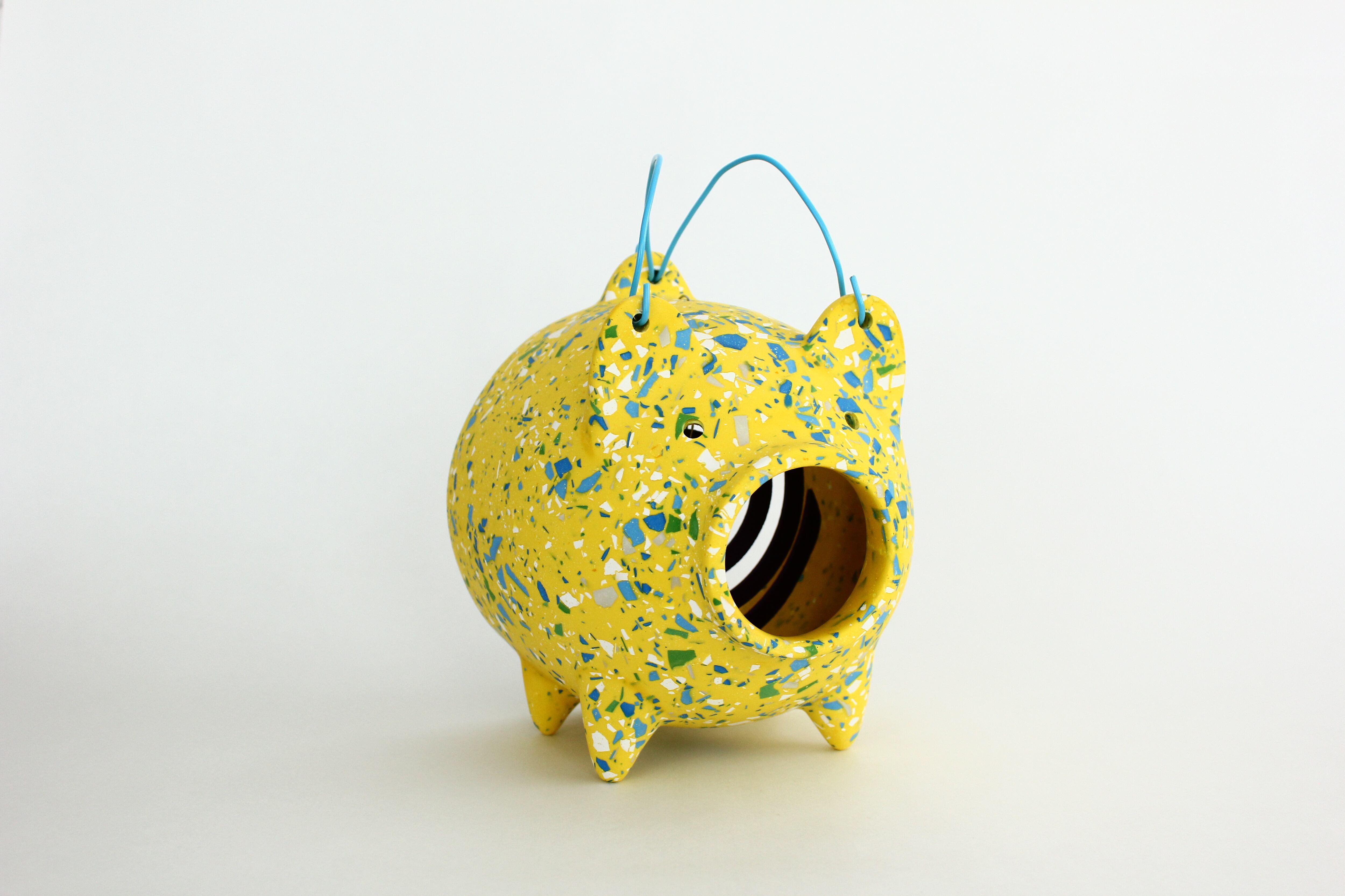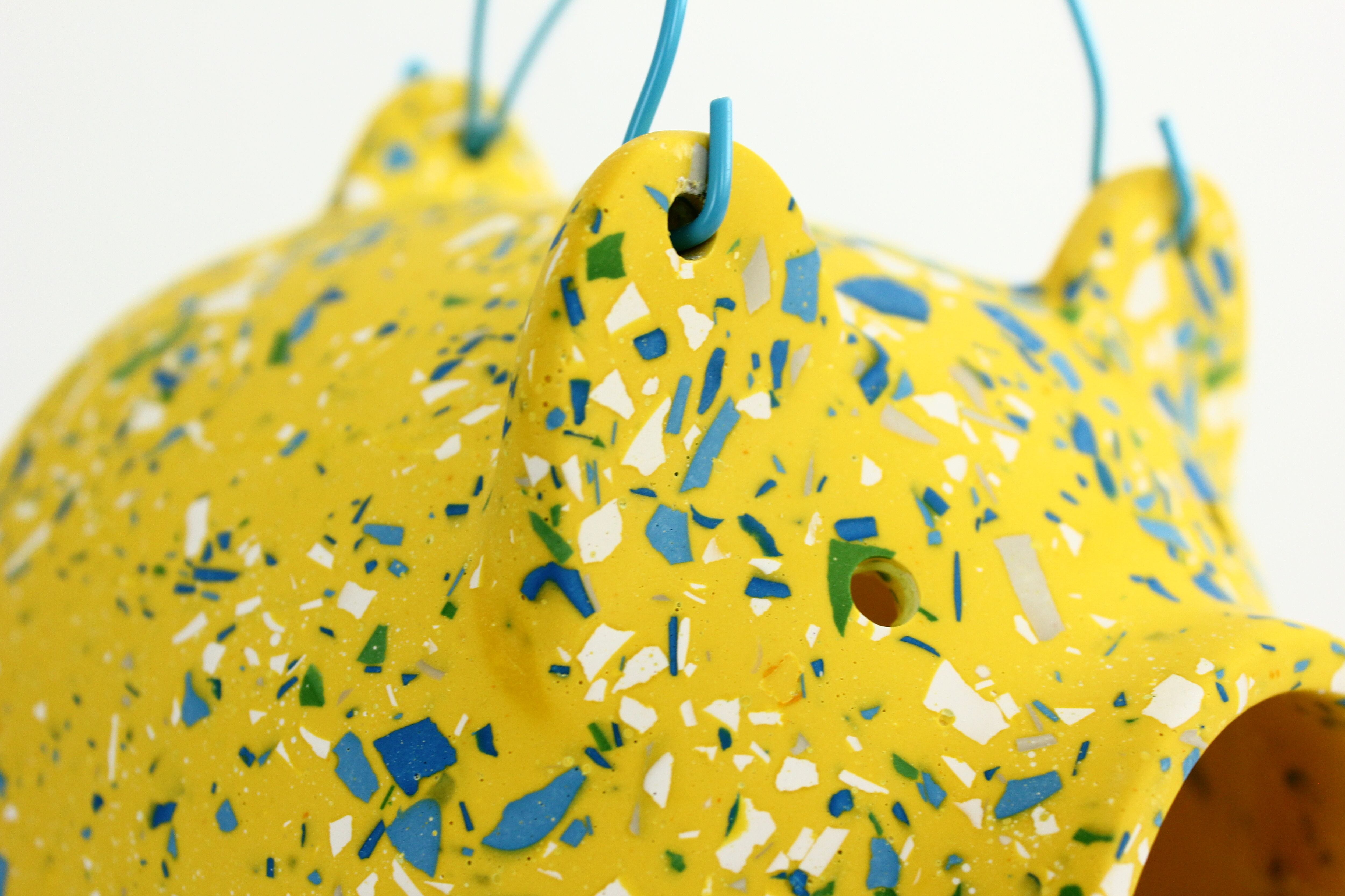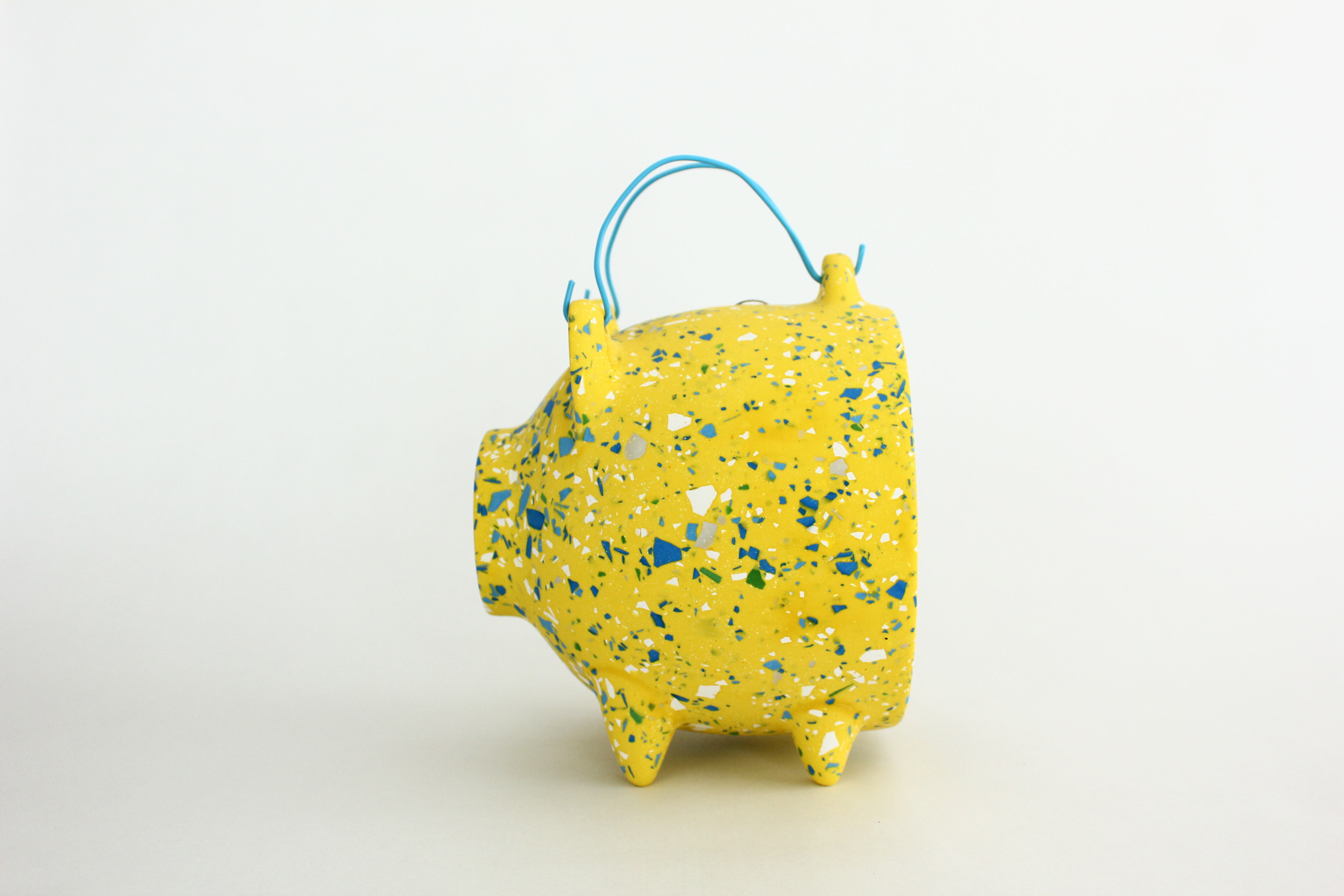 本来は陶器などを用いて作られる落ち着いた印象の蚊やり豚ですが、ジェスモナイトを用いてカラフルでポップな印象にしました。
