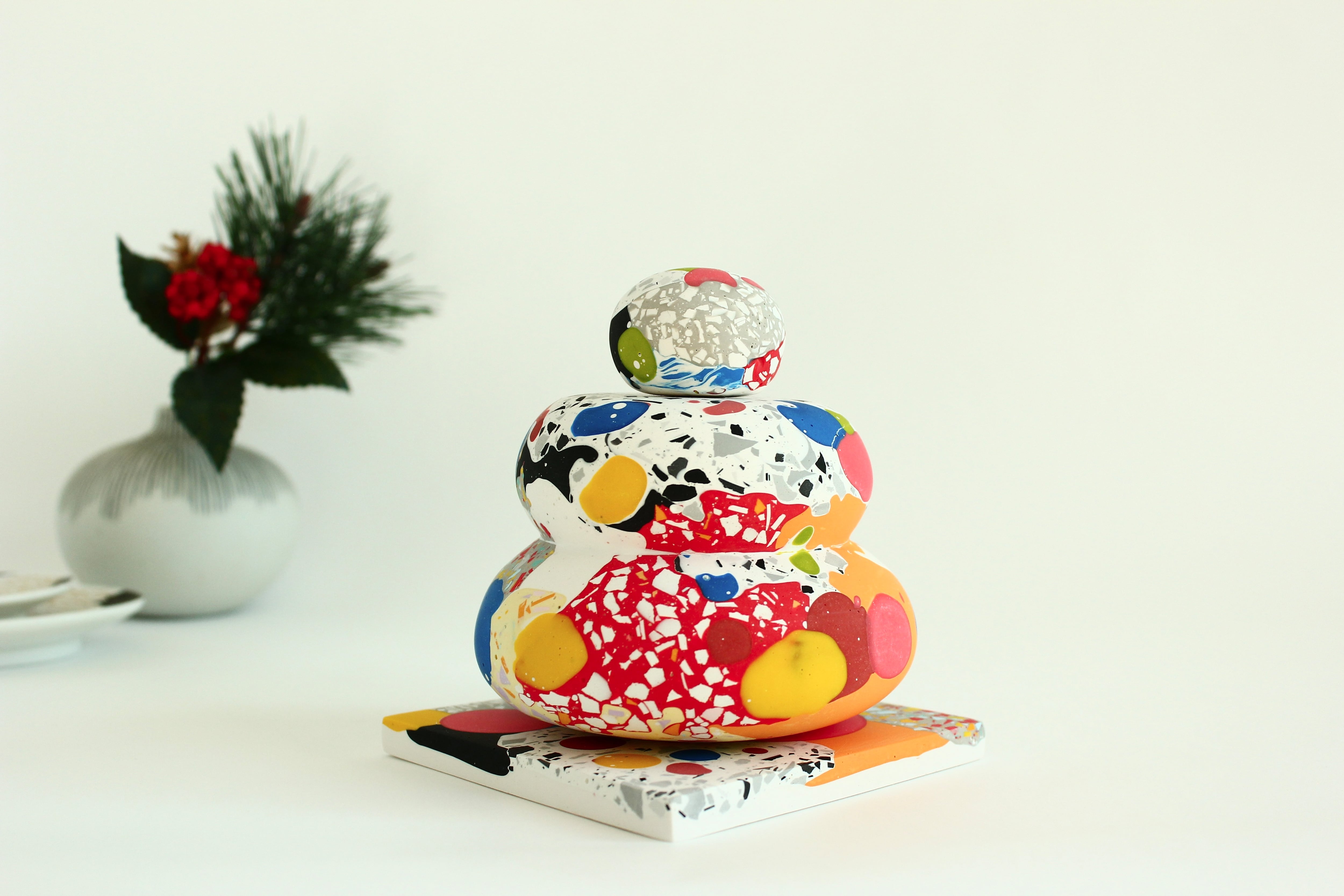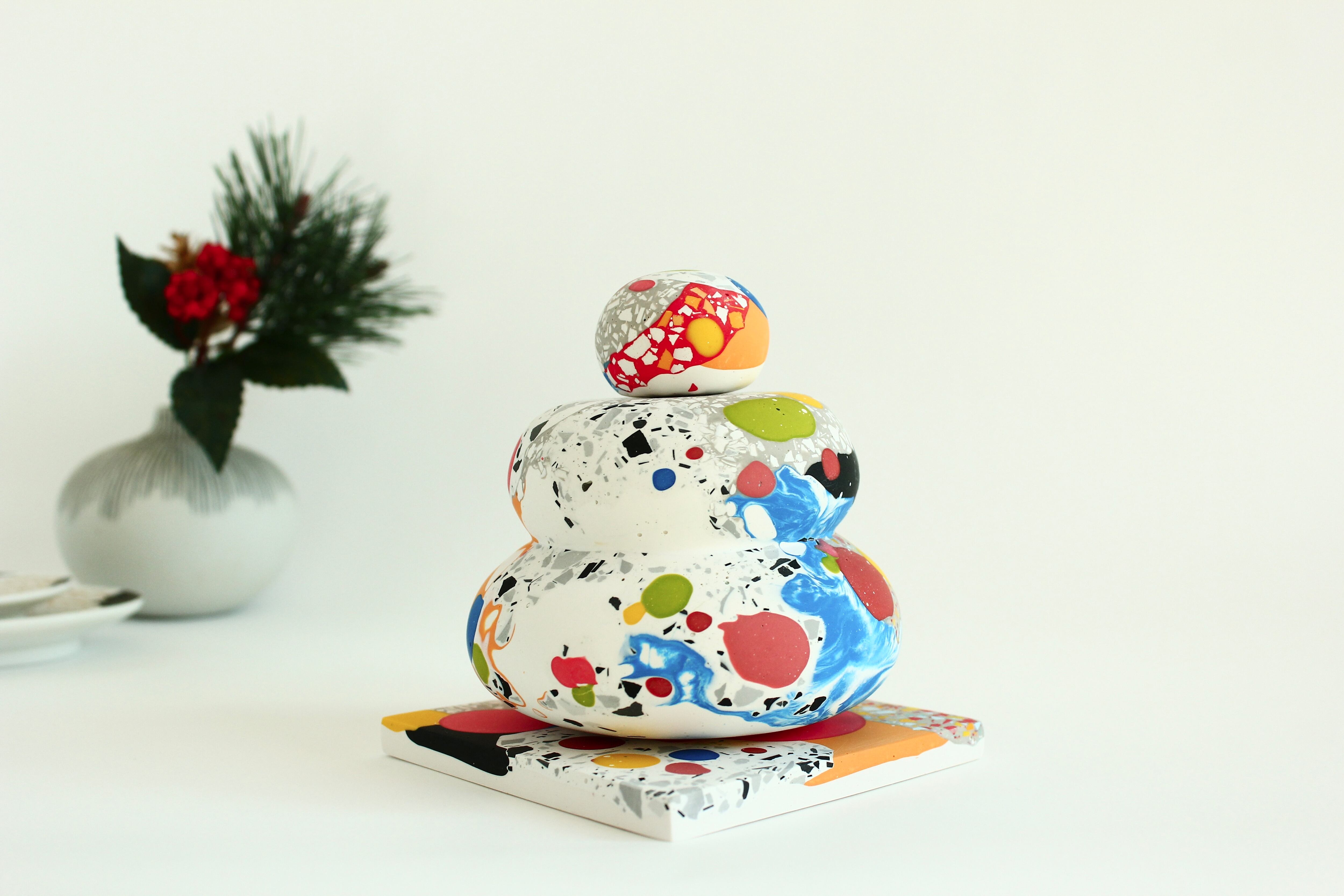 「ジェスモナイト」という水性樹脂でできた、カラフルな鏡餅。